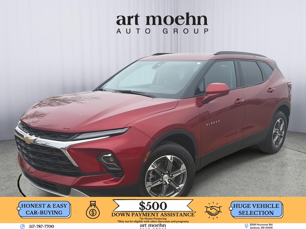 2024 Chevrolet Blazer LT, has a Radiant Red Tintcoat exterior and an Jet Black/Medium Gray interior color. 23,792 miles. Stock Number 74101A. You can connect with us by calling 517-787-7700.