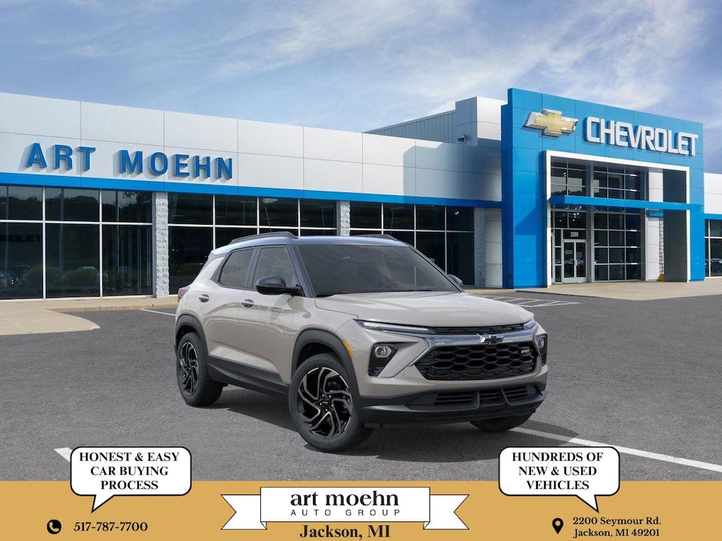2026 Chevrolet Trailblazer RS, comes in White Sands exterior with Jet Black with Red accents interior. Call us at 517-247-2048 and reference stock Number 74099