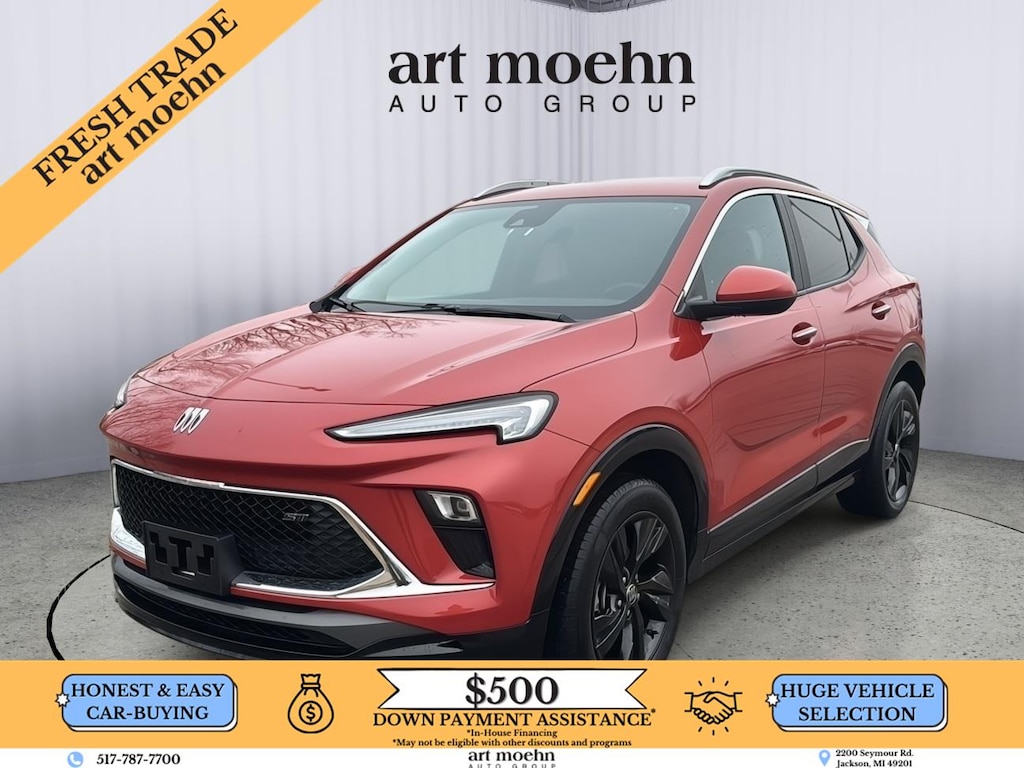 2024 Buick Encore GX Sport Touring, has a Sunrise Red Metallic exterior and a Ebony w/Ebony Accents interior color. 50,566 miles. Stock Number A2425. You can connect with us by calling 517-787-7700.