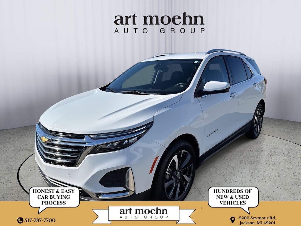 2022 Chevrolet Equinox Premier, has a Summit White exterior and a Jet Black interior color. 74,617 miles. Stock Number 72968A. You can connect with us by calling 517-787-7700.