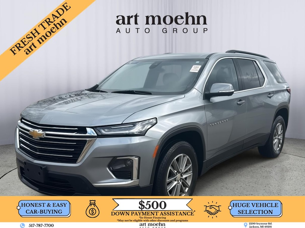 2023 Chevrolet Traverse LT Cloth, has a Sterling Gray Metallic exterior and a Jet Black interior color. 47,265 miles. Stock Number A2481. You can connect with us by calling 517-787-7700.