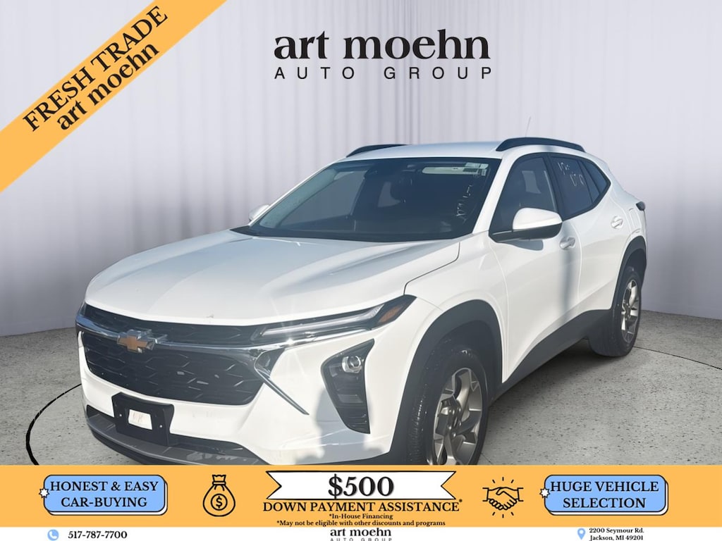 2025 Chevrolet Trax LT, has a Summit White exterior and a Jet Black with Blue accents interior color. 21,898 miles. Stock Number A2349. You can connect with us by calling 517-787-7700.