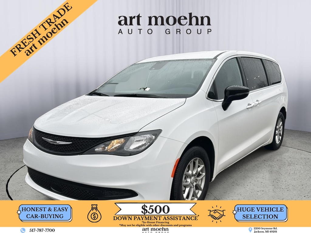 2026 Chrysler Voyager LX, has a Bright White Clearcoat exterior and a Black interior color. 202 miles. Stock Number 73494A. You can connect with us by calling 517-787-7700.