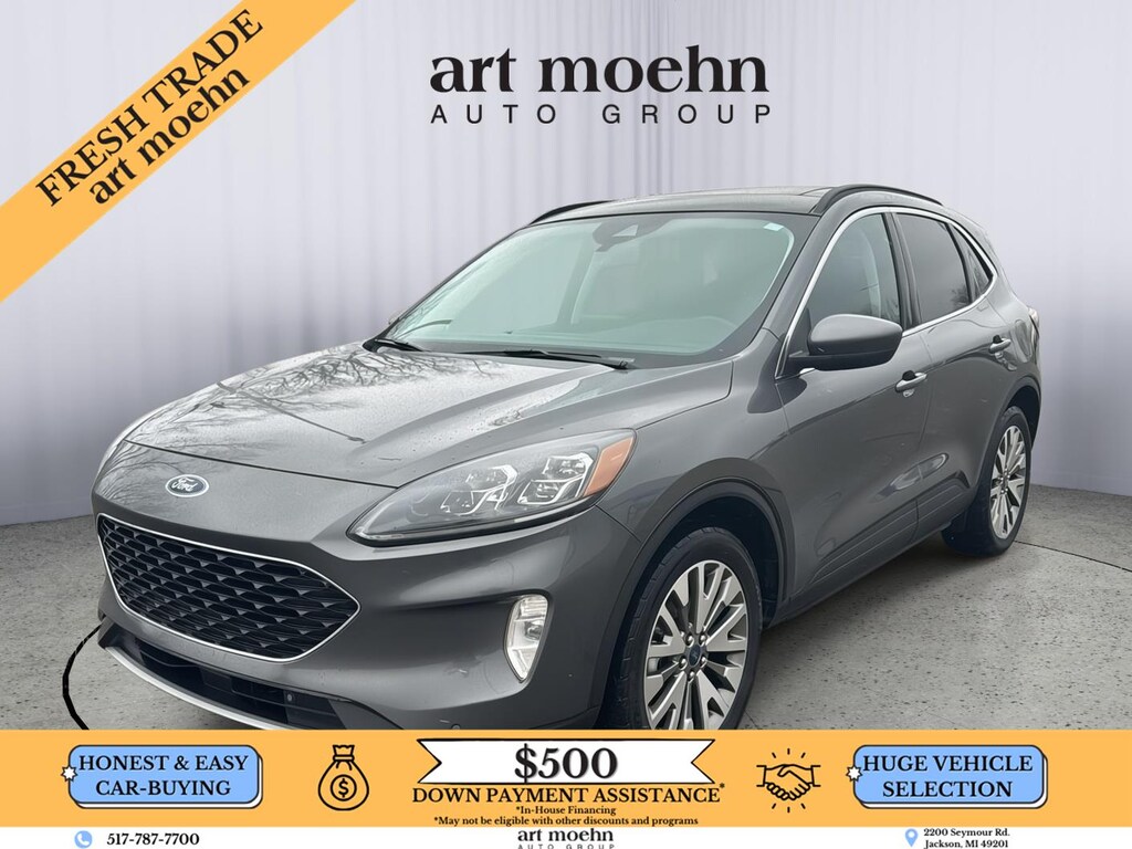 2022 Ford Escape Titanium Hybrid, has a Carbonized Gray Metallic exterior and a Ebony interior color. 98,376 miles. Stock Number 73852A. You can connect with us by calling 517-787-7700.