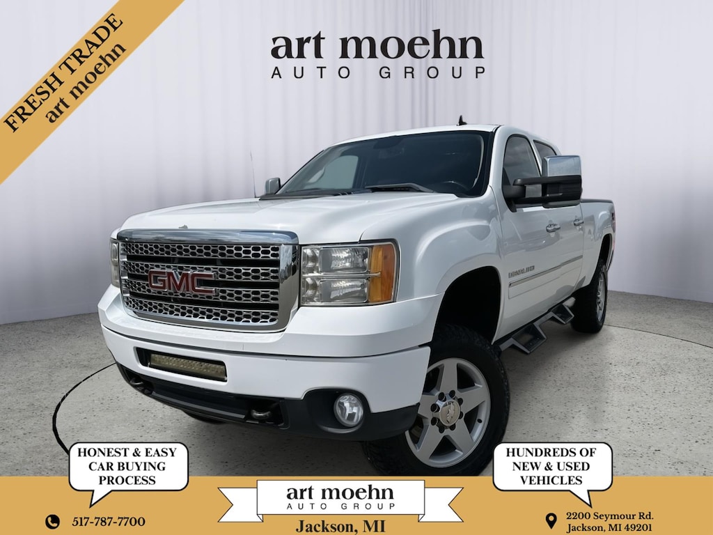 2011 GMC Sierra 2500HD Denali, has a Summit White exterior and a Ebony interior color. 46,653 miles. Stock Number A2367C. You can connect with us by calling 517-787-7700.