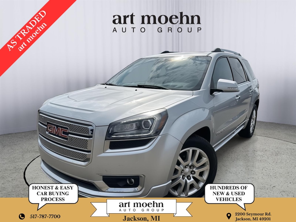 2016 GMC Acadia Denali, has a Quicksilver Metallic exterior and a Ebony interior color. 138,913 miles. Stock Number A2481A. You can connect with us by calling 517-787-7700.