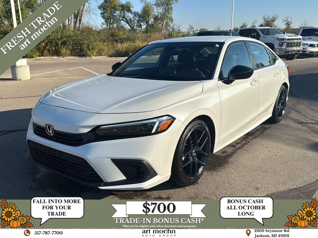 2023 Honda Civic Sedan Sport, has a Platinum White Pearl exterior and a Black interior color. 27,539 miles. Stock Number 11104. You can connect with us by calling 517-787-7700.