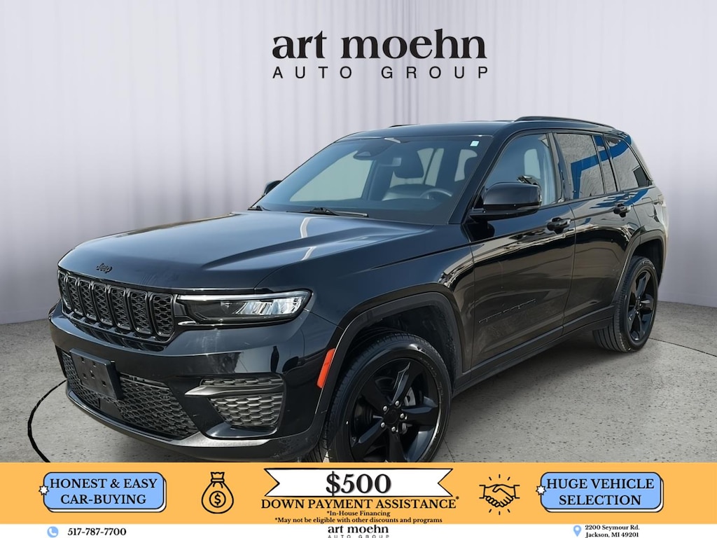 2023 Jeep Grand Cherokee Altitude, has a Diamond Black Crystal Pearl exterior and a Global Blk w/Global Blk interior color. 62,382 miles. Stock Number A2332. You can connect with us by calling 517-787-7700.