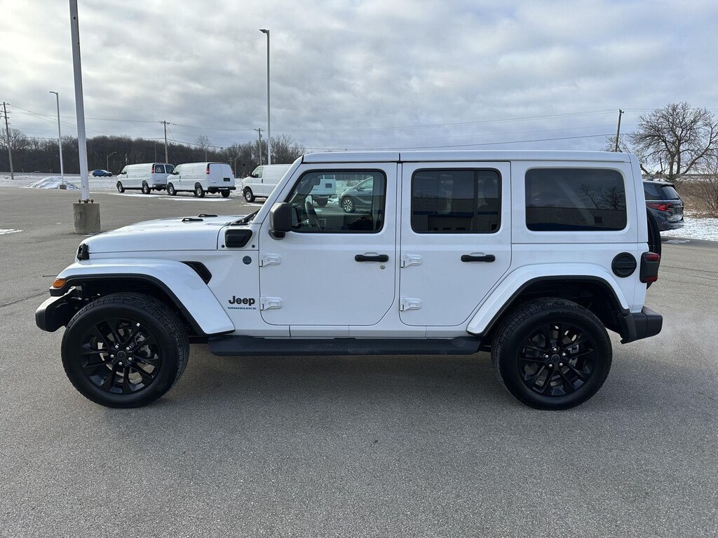 2025 Jeep Wrangler 4xe Sahara, has a Bright White Clearcoat exterior and a Black interior color. 13,349 miles. Stock Number A2385. You can connect with us by calling 517-787-7700.